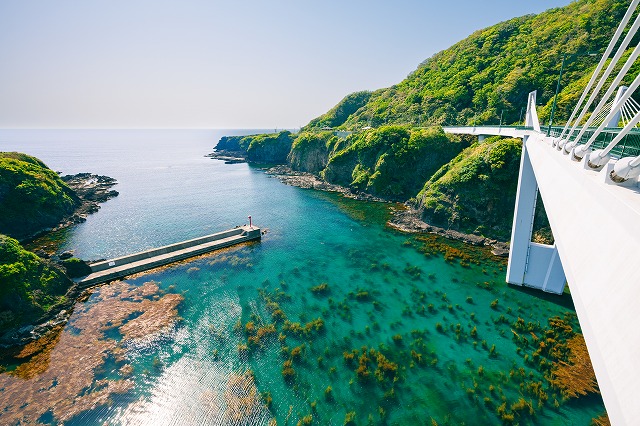 エメラルドグリーンの入り江に架かる「長者ヶ橋」も絶景