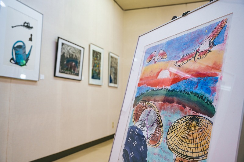 館内には、佐渡版画村運動の礎を築いた故・高橋信一氏の作品をはじめ、地元のアマチュア作家による作品がずらりと並びます。