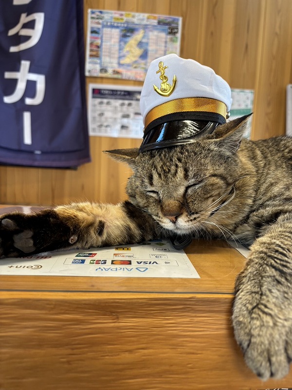 入口で旅の安全を願いながら寝る猫ちゃん🐈