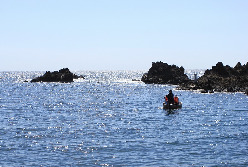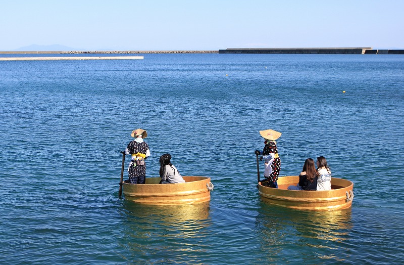 小木地区といえば、なんといっても「たらい舟(はんぎり)」。 もともとはサザエやワカメを獲るための実用的な漁具として使われていたものですが、今では佐渡を代表するアクティビティです。狭い岩場をスイスイ進む独特の感覚は、クルマの運転とはまた違ったワクワクがありますよ!