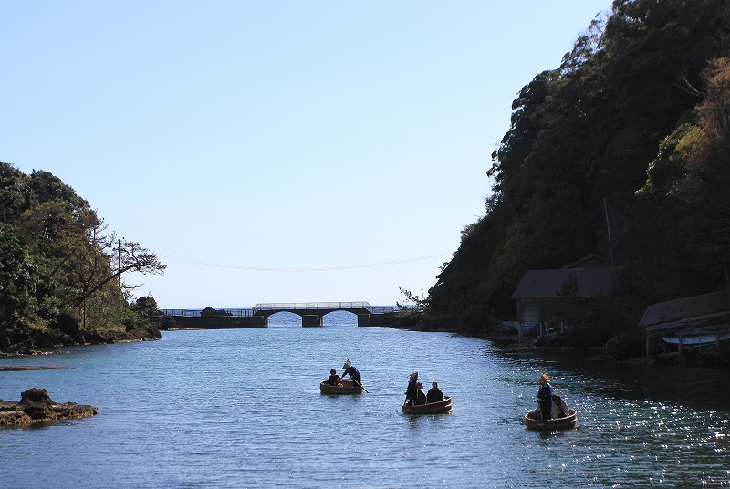 国の重要伝統的建造物群保存地区、宿根木。その入り江から出発するのが「宿根木はんぎり」です。船主の金子さんが、歴史ある町の話を交えながら漕いでくれます。職人技が光る「はんぎり」に揺られながら眺める岩礁地帯は、冒険心をくすぐります。